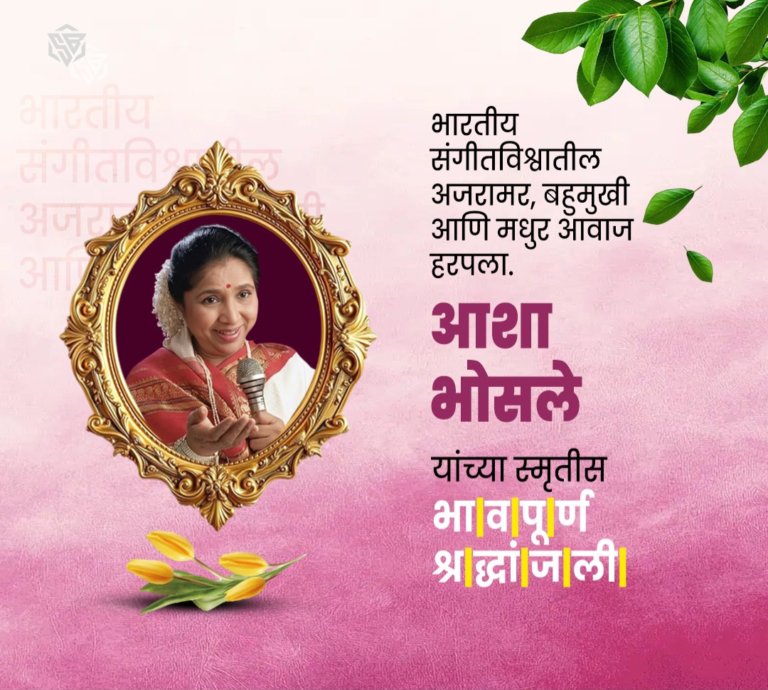 स्वर हरपले ज्येष्ठ गायिकाअशाताई भोसले भावपूर्ण श्रद्धांजली